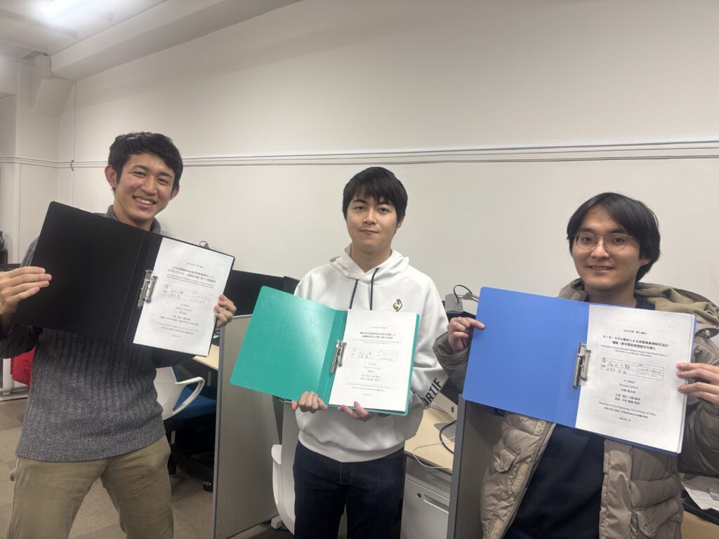 今週20日に、M2の上町さん、目賀さん、渡邉さんの3人が無事修士論文を提出されました!